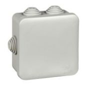 Распределительные коробки Systeme Electric (ранее Schneider Electric) используются для открытой установки. Имеют защёлкивающуюся крышку, колпачки, изолирующие крепёжные винты, и 6 ступенчатых сальников для ввода кабеля или гофротрубы. Сальники подходят для кабелей и труб диаметром 4…8, 8…12, 12…16 и 20 мм. Размеры: внутренние 70x70x40, внешние 95х95х48 мм. Степень защиты – IP55, огнестойкость – 750 °С. Материал: полипропилен. Цвет - серый.